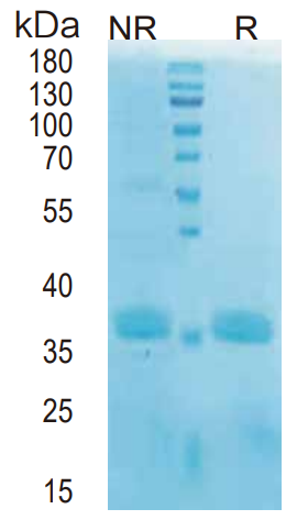 4 ug/lane protein was resolved with SDS-PAGE under non-reducing (NR) and reducing (R) conditions and visualized by Coomassie Blue staining.