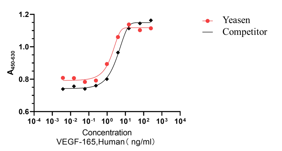 VEGF是一种强效的生长和血管生成细胞因子。它刺激内皮细胞的增殖和存活,促进血管生成和血管通透性。VEGF在血管化组织中表达,在正常和病理血管生成中发挥重要作用。VEGF与肿瘤转移和眼内新生血管综合征的诱导有关。VEGF通过三种受体发出信号;fms样酪氨酸激酶(flt-1)、KDR基因产物(KDR的鼠同源物是flk-1基因产物)和flt4基因产物。重组人VEGF165是一种38.2kDa、二硫键连接的同源二聚体蛋白,由两条165个氨基酸的多肽链组成。