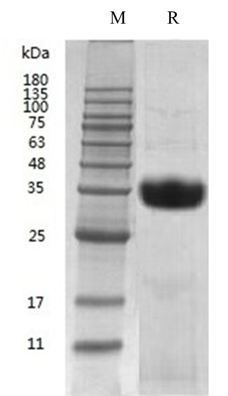 Human PDGF-AA Protein on SDS-PAGE under reducing (R) condition. The purity is greater than 95%.