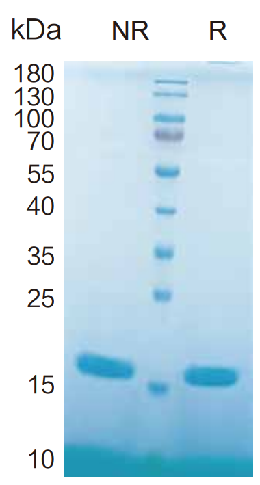 4 ug/lane protein was resolved with SDS-PAGE under non-reducing (NR) and reducing (R) conditions and visualized by Coomassie Blue staining.