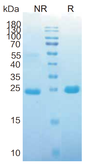 4 ug/lane protein was resolved with SDS-PAGE under non-reducing (NR) and reducing (R) conditions and visualized by Coomassie Blue staining.