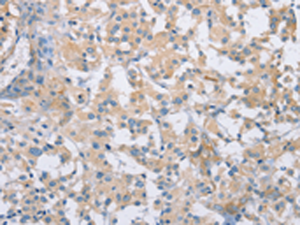 Immunohistochemistry analysis of paraffin-embedded Human thyroid cancer using CDCP1 antibody. High-pressure and temperature Sodium Citrate pH 6.0 was used for antigen retrieval.