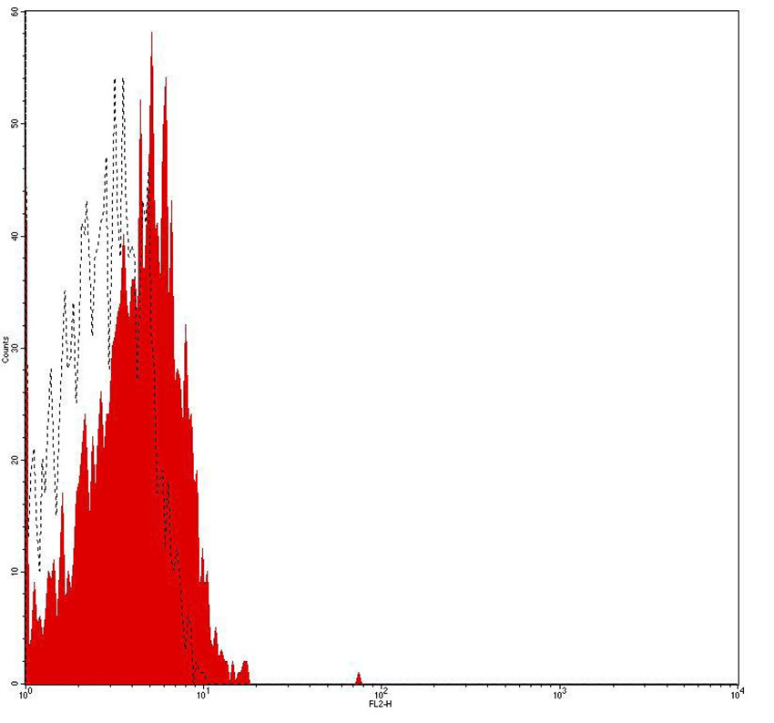 Flow cytometry analysis of Human peripheral blood lymphocytes stained with mouse IgM antibody(6F8E10PE)