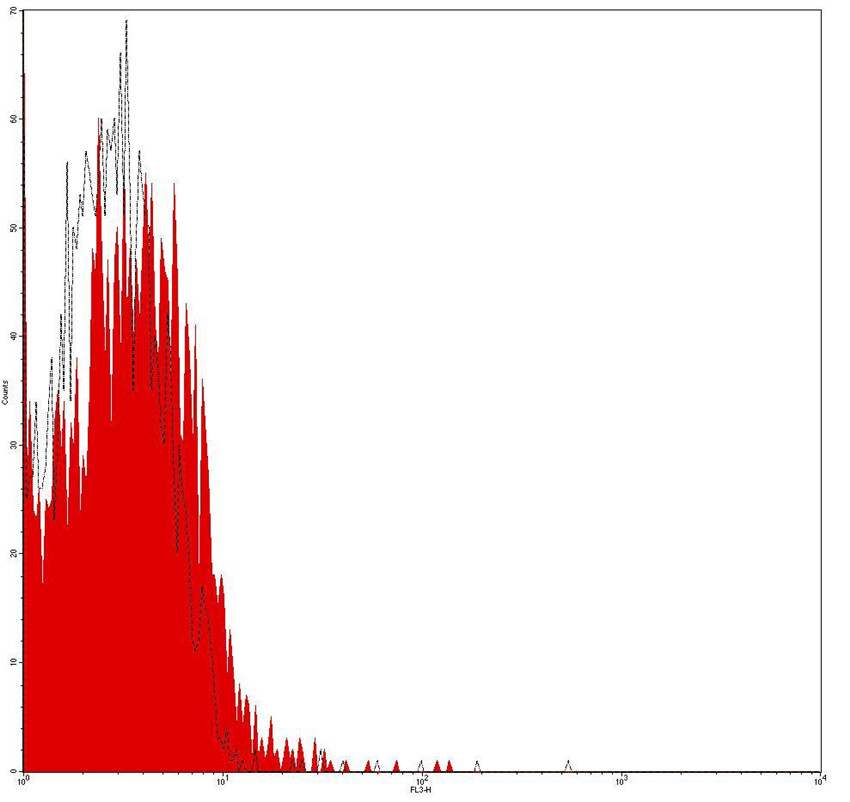Flow cytometry analysis of Human peripheral blood lymphocytes stained with mouse IgG2b antibody(4C3F8PECy5).