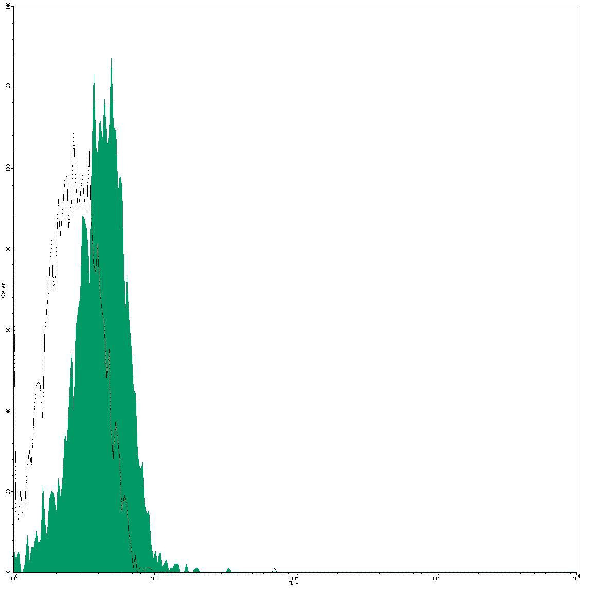Flow cytometry analysis of Human peripheral blood lymphocytes stained with mouse IgM antibody(6F8E10FITC)