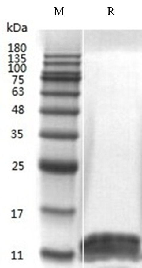 Bovine LR3 IGF-1 Protein on SDS-PAGE under reducing (R) condition. The purity is greater than 95%.